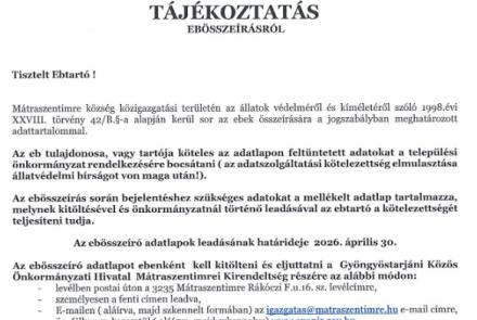 A Mátraszentimrei Községi Önkormányzat értékesítésre hirdeti - versenytárgyaláson - a 3235 Mátraszentimre, De