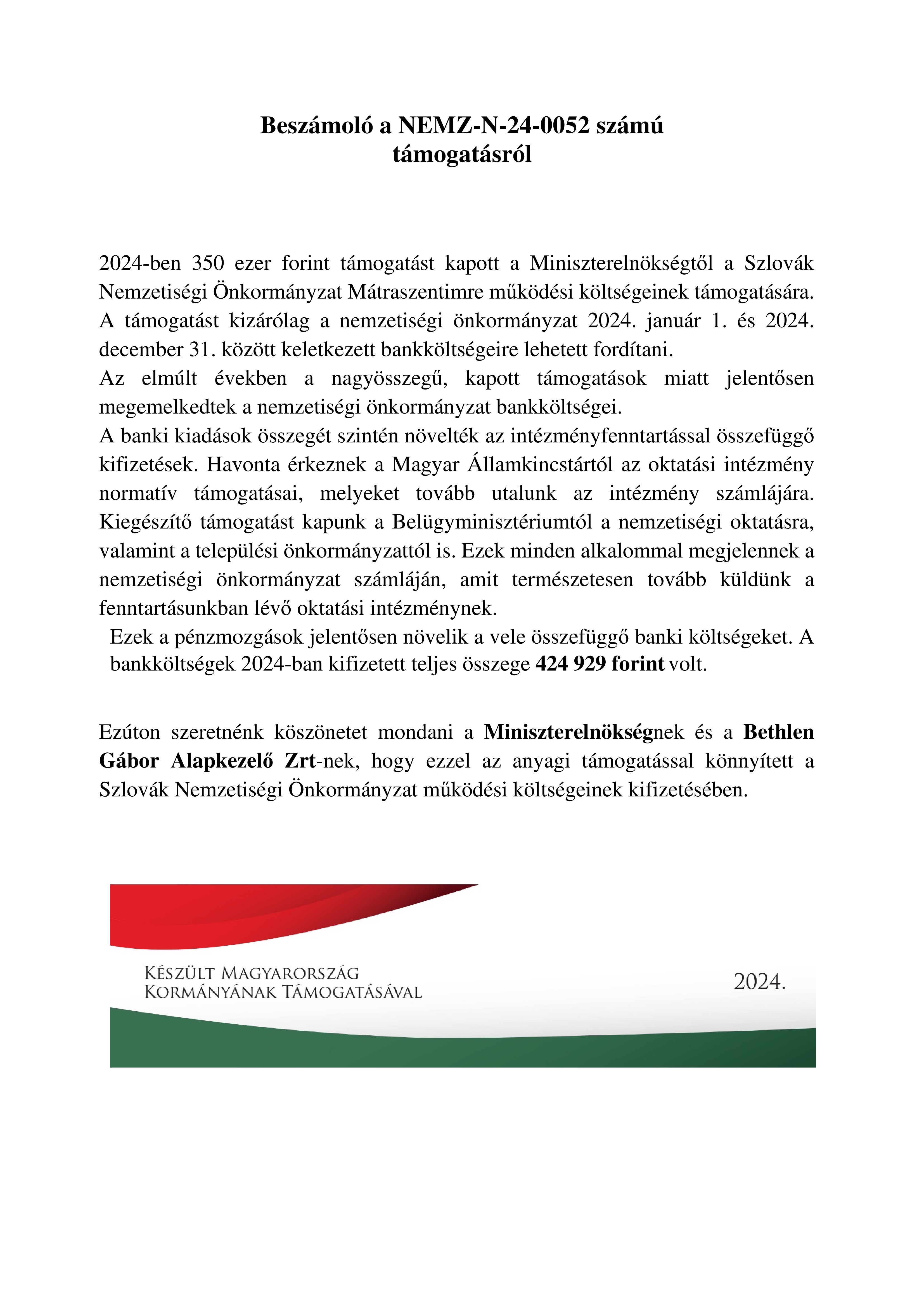 Beszámoló a NEMZ-N-24-0052 számú támogatásról / 2025.01.30. admin küldte be 30 January 2025 időpontban