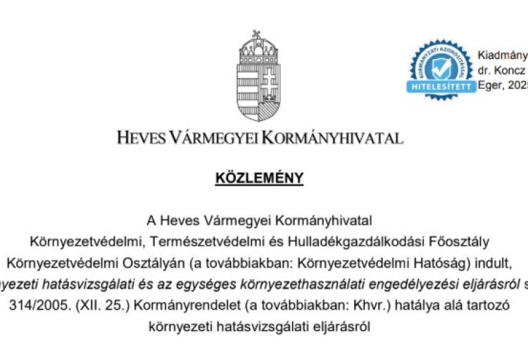 Közlemény a Mátraszentistváni Sípark fejlesztésére vonatkozó környezeti hatásvizsgálati eljárásról