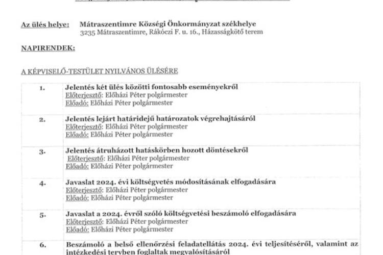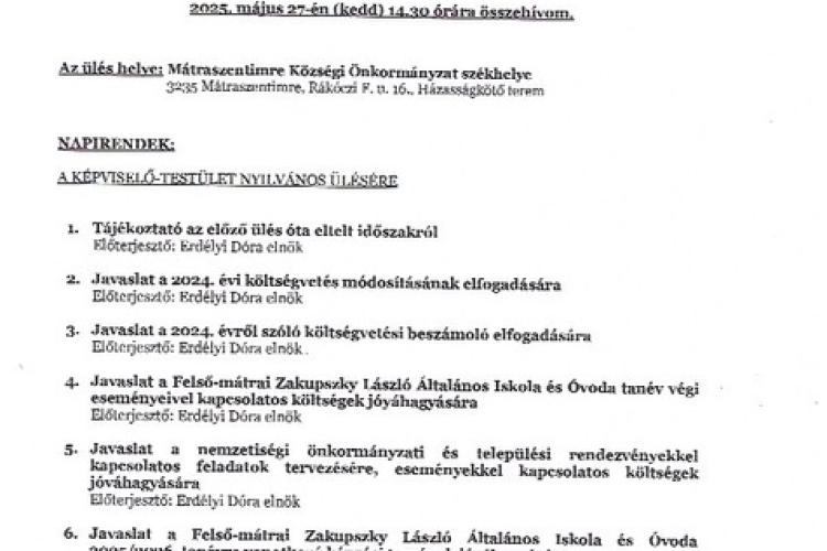 Meghívó a 2025.05.29-i Képviselő-testületi ülésre