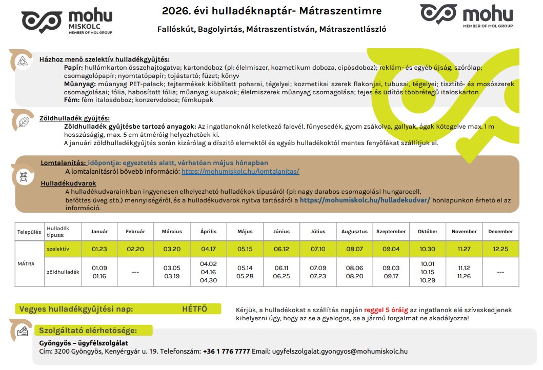 Lomtalanítás Mátraszentimre közigazgatási területén 2026. májusában lesz.