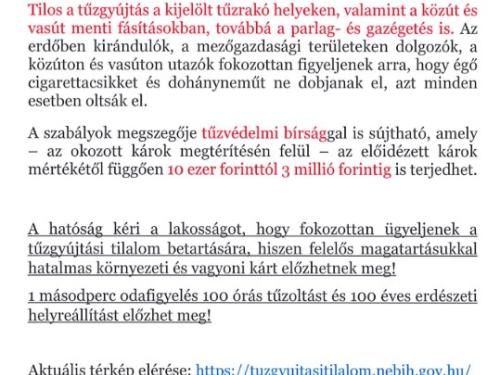 Tűzgyújtási tilalom feloldása 2026. április 1-el